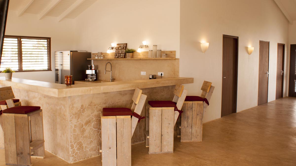 Villa Cas Maya is a spacious six-person (max. Eight people in consultation) villa with swimming pool and is located on Bona Bista, a quiet and well-secured residential area with a central location on the island. Because of this location everything is close by and with a 5 minute drive you are in the center of Kralendijk or Rincon. The holiday home has a cozy living room and an open kitchen with breakfast bar. By opening the mahogany shutter doors you move the porch into the kitchen and the living room, creating a spacious, comfortable living space.